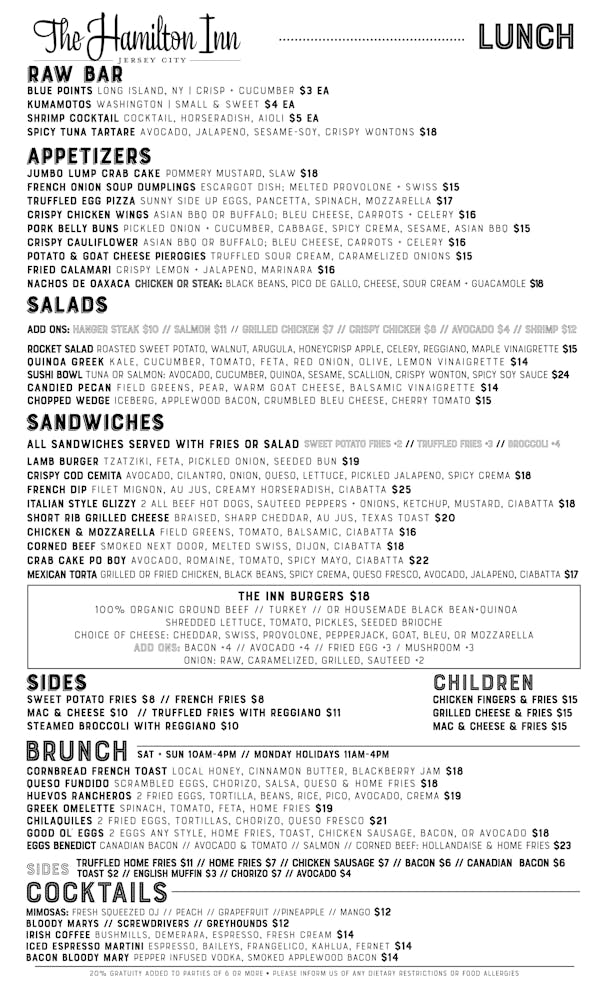 The Hamilton Inn Menu In Jersey City New Jersey Usa